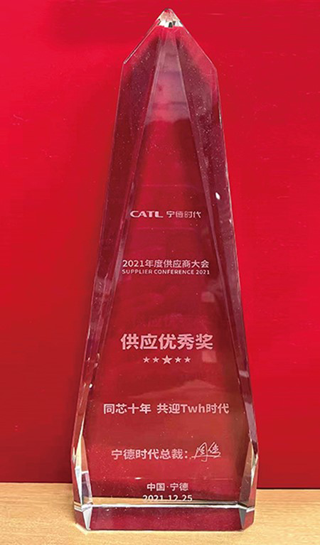 携手奋进 共赢TWh时代 | “国力”喜获宁德时代2021年度供应优秀奖2021年的最后一天,在这新年的钟声即将敲响的时刻,国力源通收到了一份来自远方福建宁德的最珍贵的跨年礼物