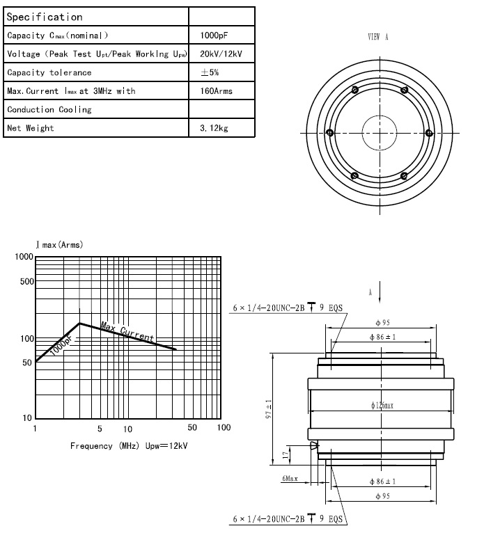 CKT1000/14/160 型固定电容器采用陶瓷外壳、真空介质、具有耐压高、体积小、Q值高、性能稳定可靠价格低廉等特点,广泛用于感应加热、介质加热、通讯、广播等设备。