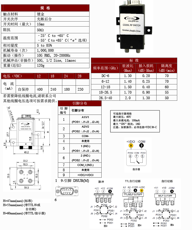 产品名称:射频同轴继电器JGLT5-S/K-自保持
