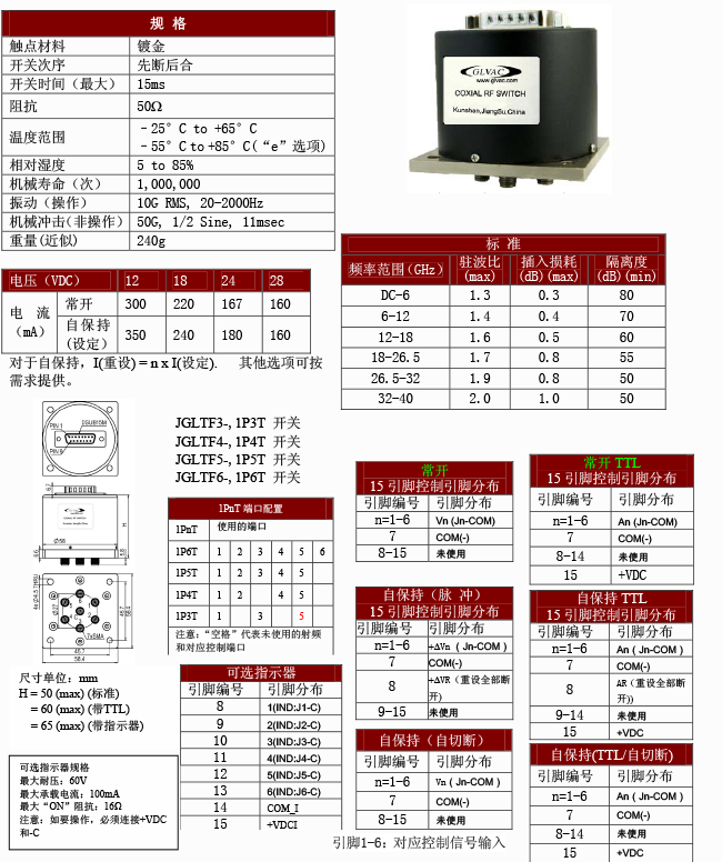 射频同轴继电器JGLTF6T-K40-常开或自保持 下载